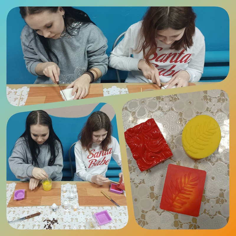 Мыловарение – это увлекательное занятие, которое поможет проявить креативность, получить удовольствие от самого процесса и, конечно же, создать ароматное и необычное мыло в единственном экземпляре, которое станет оригинальным и очень полезным подарком. Ребята познакомились с технологией приготовления мыла с добавлением пищевых красителей, эфирных масел и декоративных элементов, узнали, как новичку с нуля начать варить мыло и что для этого нужно. Практическая часть оказалась очень интересной и увлекательной. В ход пошли формы-заготовки для мыла, мыльная основа, красители, ароматизаторы. Девочки убедились, что делать мыло своими руками очень увлекательно, просто и интересно!