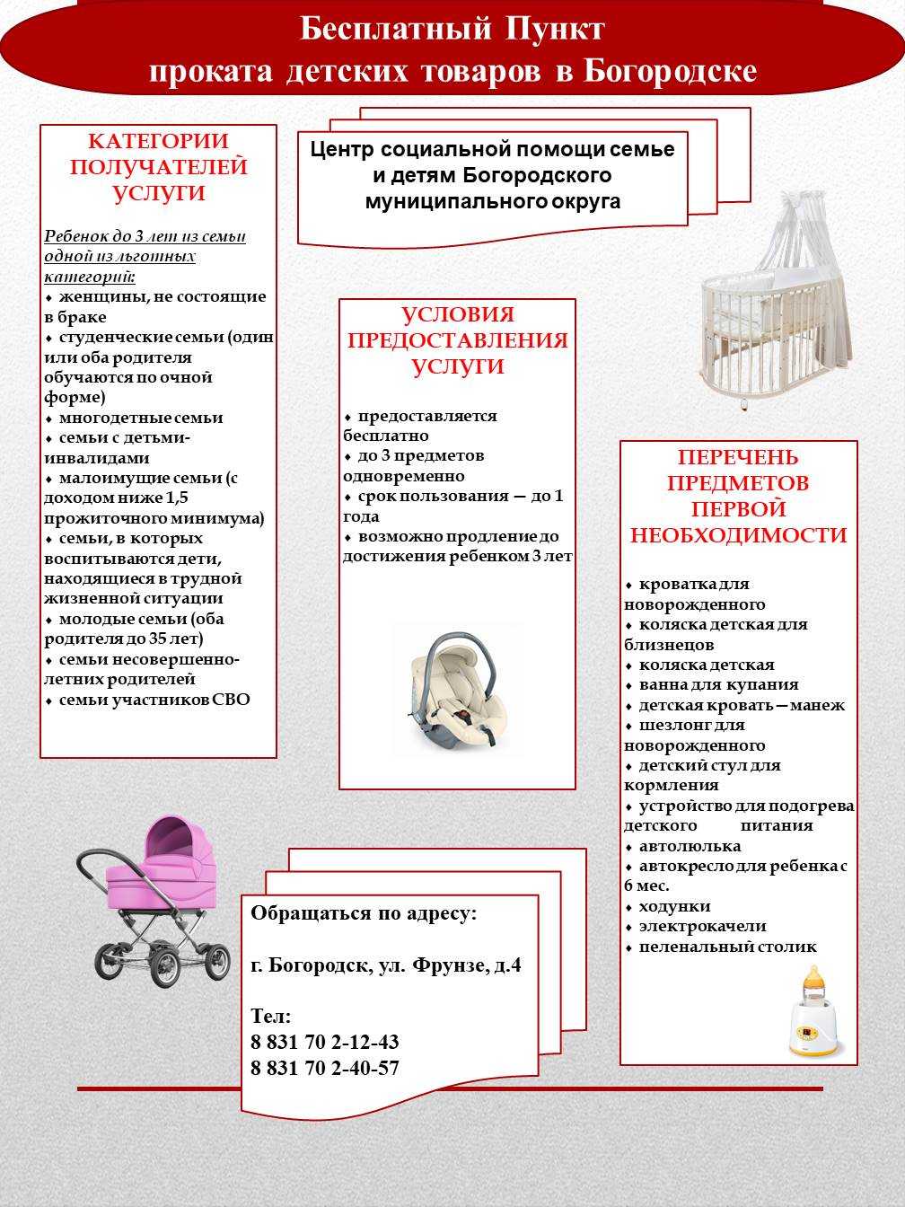 Право на получение в безвозмездное временное пользование предметов первой необходимости для новорожденных предоставляется гражданам РФ, имеющим место жительства на территории Нижегородской области, воспитывающим детей в возрасте от 0 до 3 лет и относящимся к одной из следующих категорий: