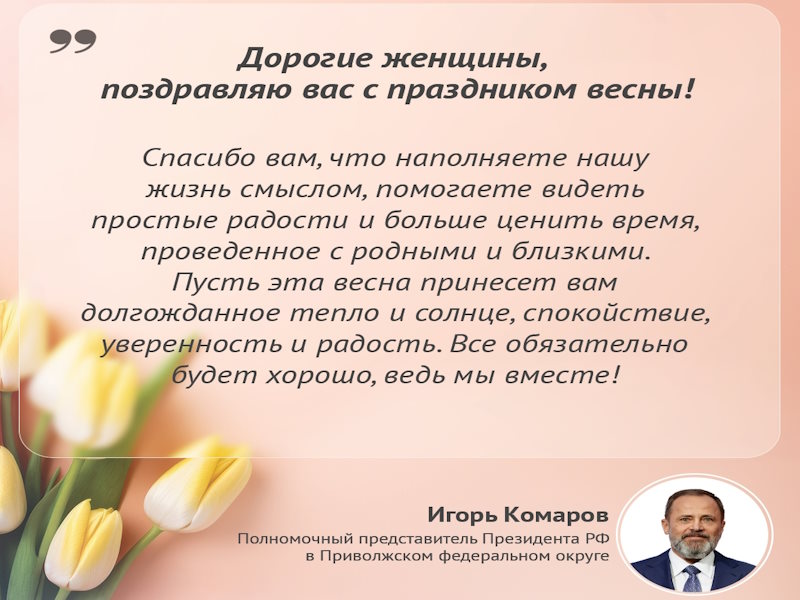 В своём обращении Игорь Комаров отметил невероятный вклад каждой женщины в заботу о близких, создание уюта и вдохновения.