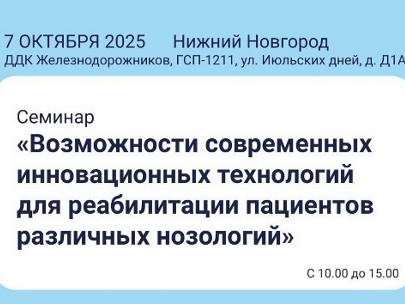 Участие в научно-практическом семинаре "Возможности современных инновационных технологий для реабилитации пациентов различных нозологий" 7 октября в Нижнем Новгороде прошел научно-практический семинар "Возможности современных инновационных технологий для реабилитации пациентов различных нозологий".
