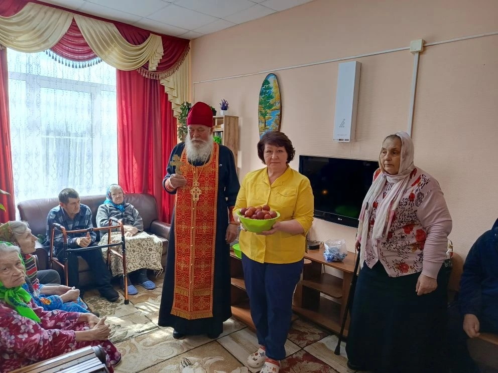 В этот праздник всех ждало праздничное угощение — ароматные куличи и яркие пасхальные яйца, ставшие символом возрождения и новой жизни. В этот день в доме-интернате особенно чувствовалось единство, забота и внимание друг к другу, а светлый праздник Пасхи оставил в сердцах участников самые тёплые воспоминания.