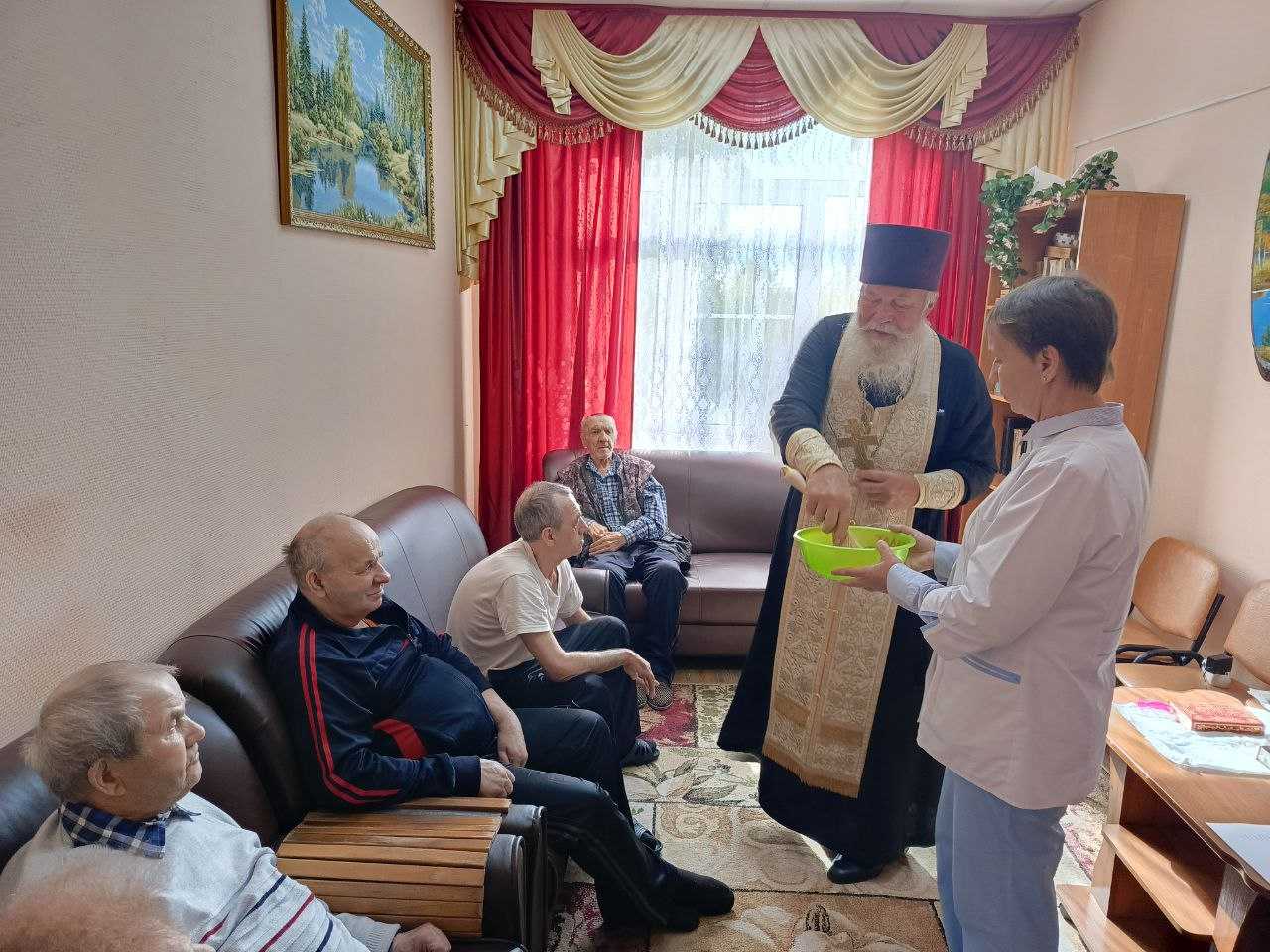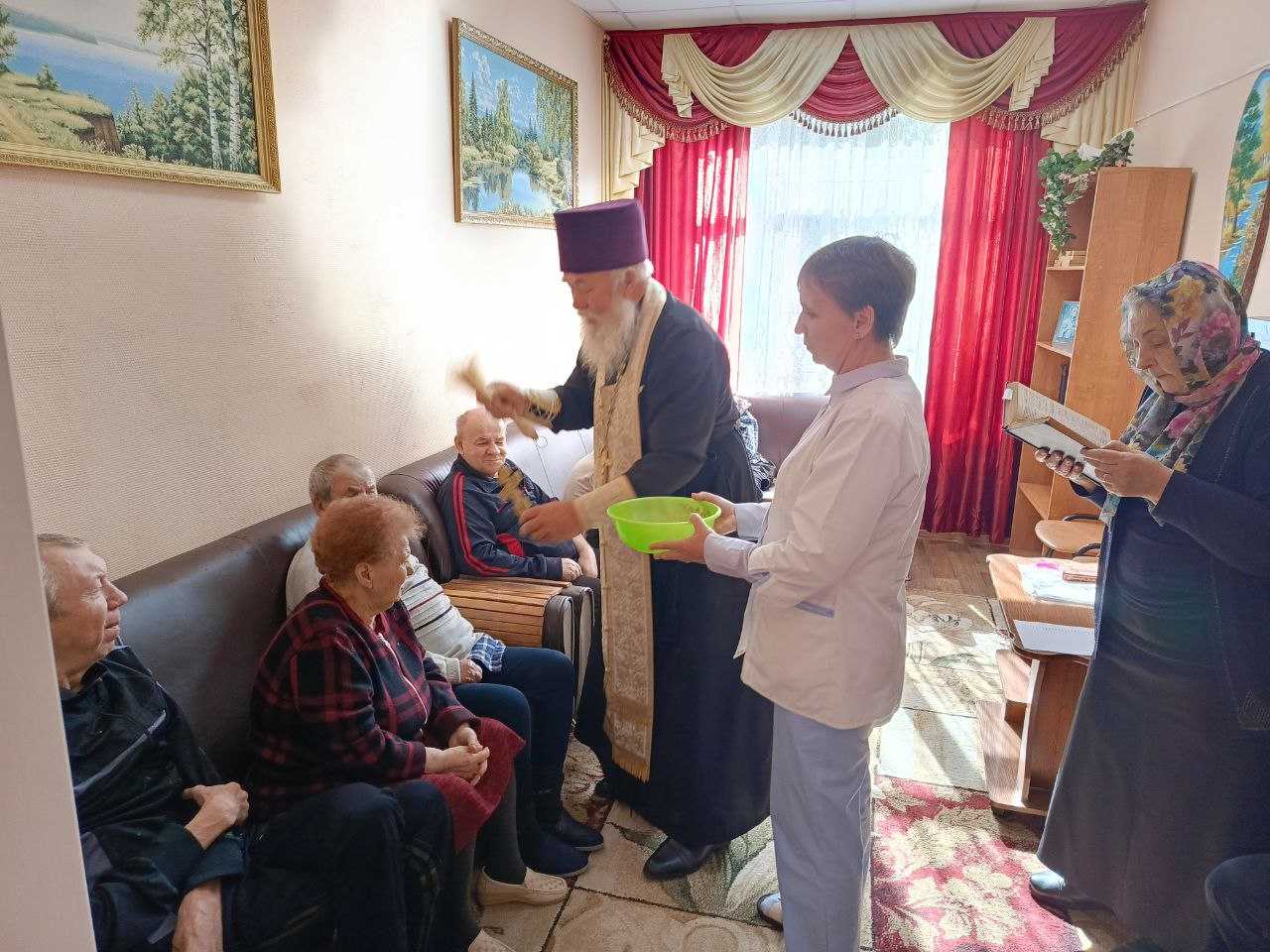 27 сентября наших бабушек и дедушек посетил о. Александр с богослужение в честь праздника Воздвижение Честного и Животворящего Креста Господня. Было совершено праздничное богослужение с водосвятием. Также было рассказано об истории возникновения этого праздника, все присутствующие получили ответы на свои вопросы от священнослужителя. Все получили позитивный настрой от такого общения.