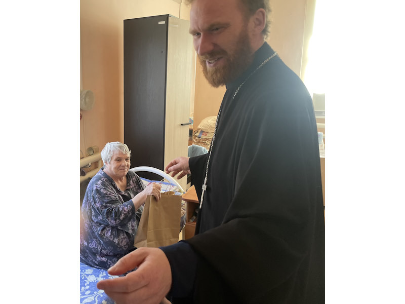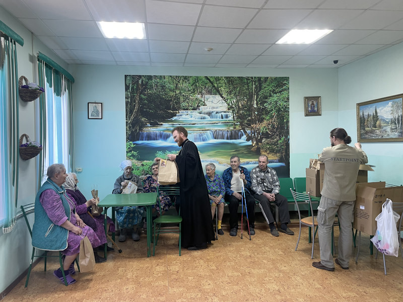 В завершении встречи все проживающие получили пасхальные куличи, сладкие подарки и благословения отца Сергия.