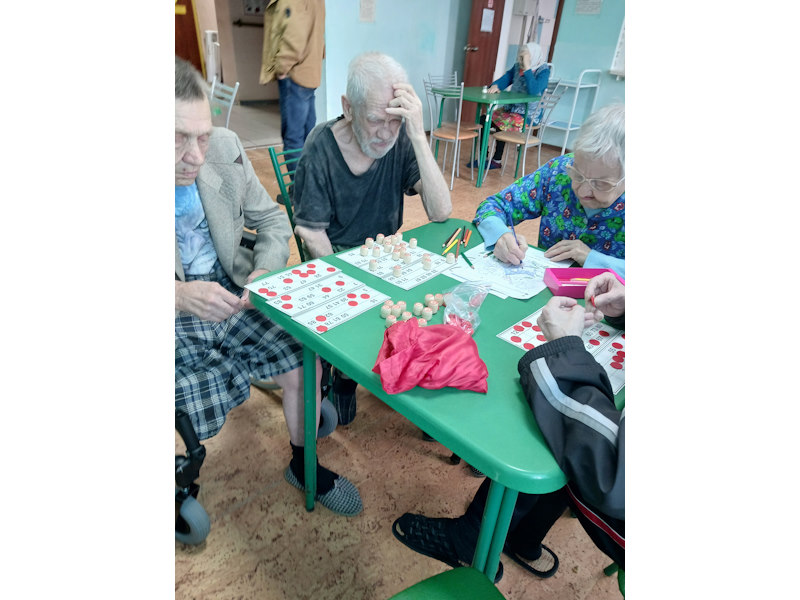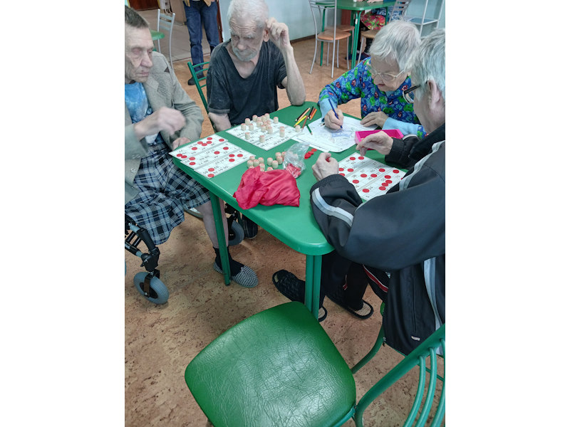 Проживающие в Богородском доме - интернате пенсионеры очень полюбили играть в различные настольные игры. и, конечно, самой любимой игрой оказалось "Лото". Казалось бы, простая игра, но для пожилых людей важно поддерживать когнитивные функции - внимание, память, координацию мелких движений рук и глаз, а также позитивное эмоциональное состояние и легкое общение с другими. Всё это обеспечивает игра в "Лото". Поэтому, в доме - интернате проводится даже небольшой турнир с призами для выигравших и всеобщей поддержкой, что существенно повышает самооценку и настроение пожилых людей.
