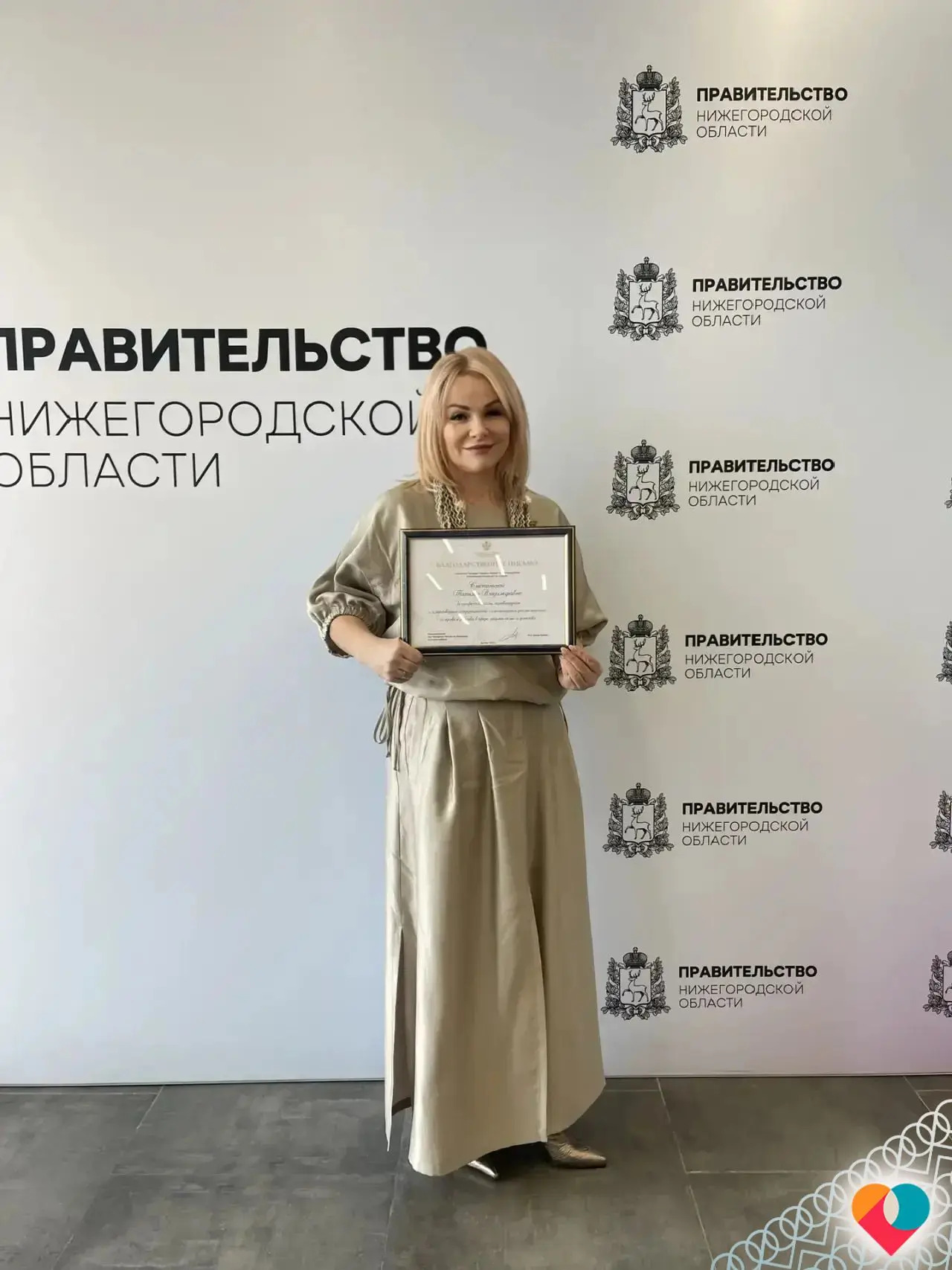 Директор центра была удостоена Благодарственного письма Уполномоченного при Президенте Российской Федерации по правам ребенка Марии Алексеевны Львовой-Беловой. Эта награда стала признанием эффективной работы учреждения и личного вклада руководителя в защиту прав и интересов детей на территории Городецкого округа.