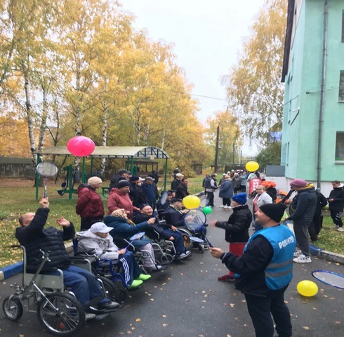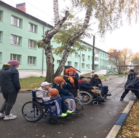 Вот и пришло самое очаровательное, красивое и прекрасное время года – золотая осень. Солнышко греет, но не обжигает, воздух становится свежим, а листья раскрашиваются в прекрасную яркую палитру. Деревья теряют свою листву, кружится по ветру листопад... Самое время одеться потеплей и выйти с нашими проживающими на спортивную площадку.