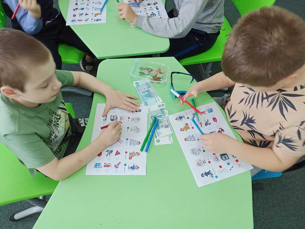 Сегодня в Мультстудии состоялось занятие по формированию основ финансовой грамотности у детей. На первом этапе урока участникам была предложена презентация "Где живут деньги", в которой были рассмотрены все варианты хранения денег. Также ребята поговорили о том, что такое деньги, какие они бывают, о бережном отношении к деньгам. На втором этапе рассмотрели вопрос откуда берутся в семье деньги и почему взрослые работают. Ребята поговорили о знакомых профессиях и об особенностях каждой профессии. В заключении каждый участник получил карточку с изображением людей разных профессий и предметов. Ребятам предстояло определить какой предмет относится к той или иной профессии и обозначить их разным цветом. Каждый цвет соответствовал определенной профессии.