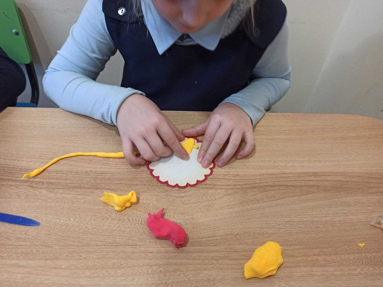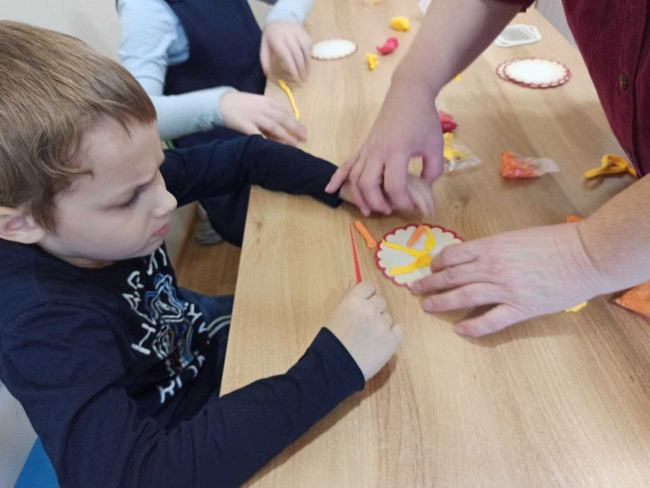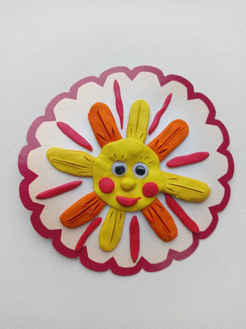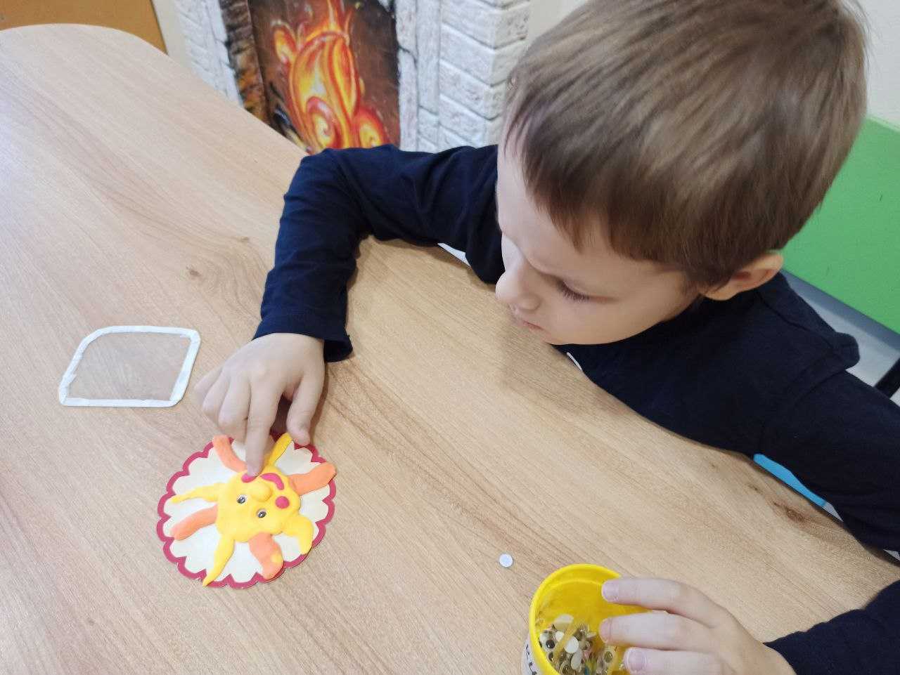 Сегодня в Студии Лепки состоялся мастер класс "Магнит "Солнышко". Ребята на картонной основе с магнитиком на оборотной стороне смастерили из воздушного пластилина весёлое солнышко. Сначала каждый участник скатал шарик из желтого пластилина и расплющили его пальцем в центре круглой картонной заготовки. Затем ребята раскатали колбаски из желтого, красного и оранжевого пластилина и сделали лучики. Готовому Солнышку они добавили красивые глазки, а из красного пластилина сделали щечки и улыбающийся ротик.