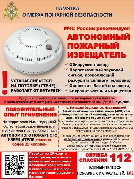МЧС России ещё раз напоминает о пользе автономного пожарного извещателя (АПИ).