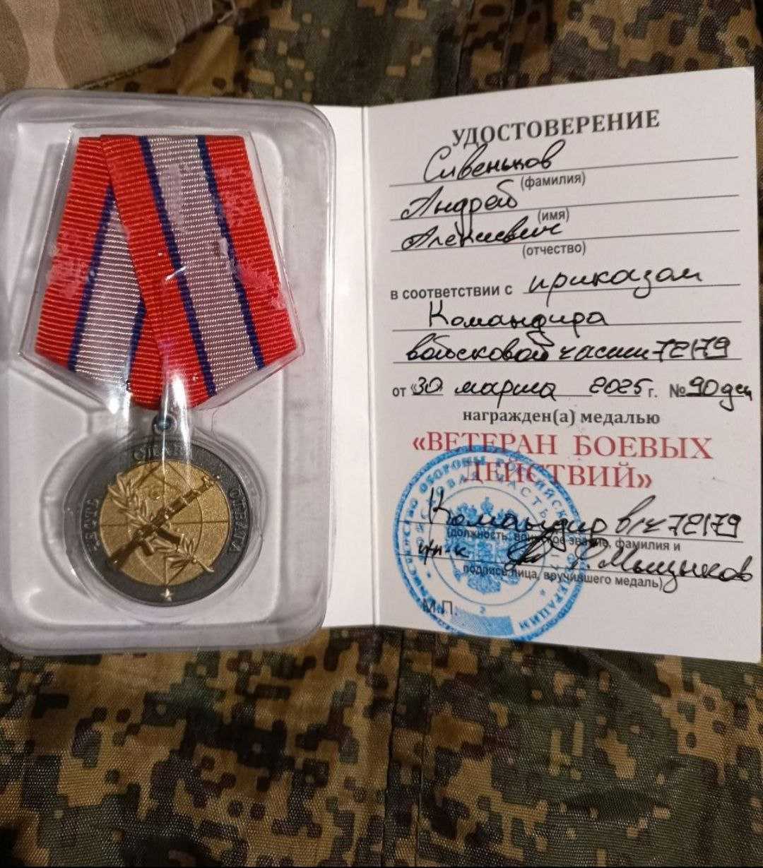 В светлый праздник Дня Победы коллектив и получатели социальных услуг "Спасского дом-интерната" поздравляет нашего сотрудника Сивенькова А.А., который принимает участие в СВО с медалью "Ветерана Боевых Действий".