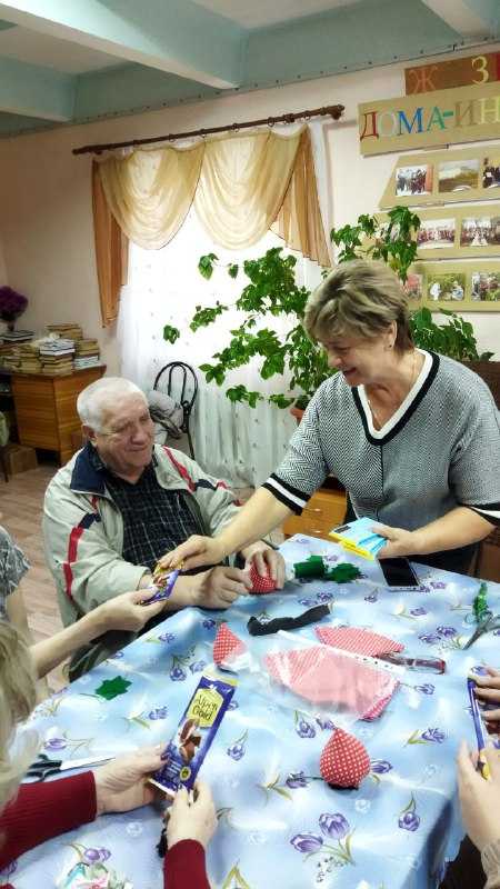 Проживающих дома-интерната вновь посетили Спасский МБУК "ЦРНПиТ". Под чутким руководством опытных мастеров каждый смог выполнить красивую ягодку игольницу, а для кого сувенир. Это было невероятно интересно и весело! В завершение творчества Скачкова В.А. прочла стихи собственного сочинения. Были вручены сладкие подарки.