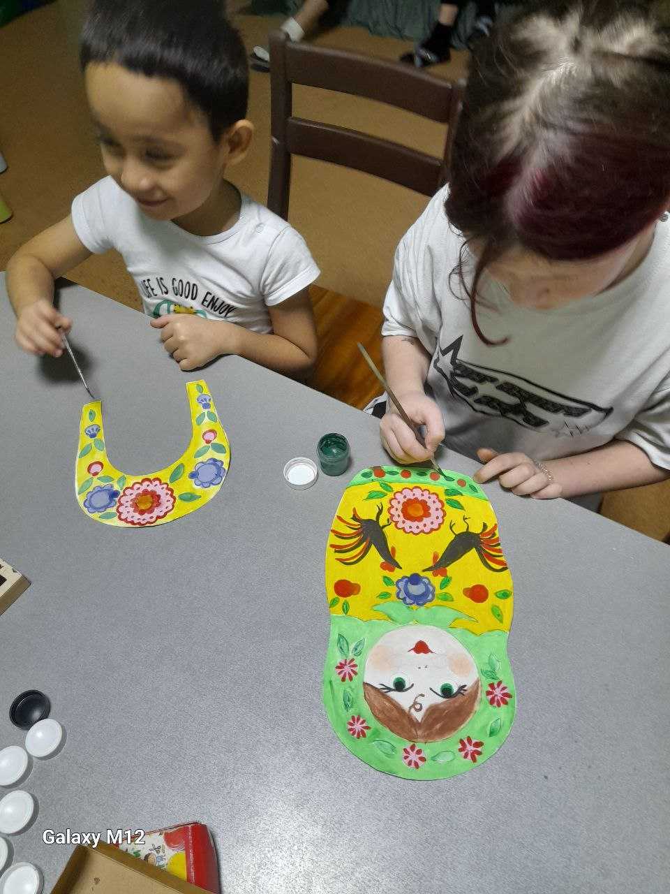 Воспитанники приемного отделения продолжают знакомиться с Городецкой росписью, на занятиях развивают чувство цвета, вызывая эмоциональный отклик от полученного результата.