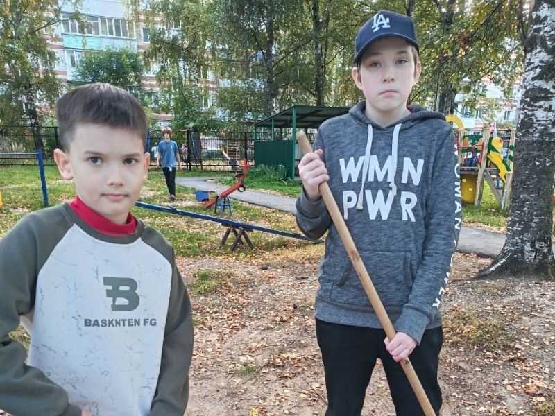 Возле центра во дворе. Нашей шумной детворе. Грабли, веники раздали. Чтобы листья мы убрали. Ребята стационарного отделения вышли на улицу, чтобы навести порядок на территории центра.