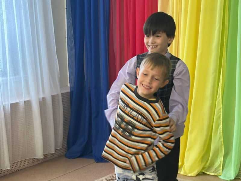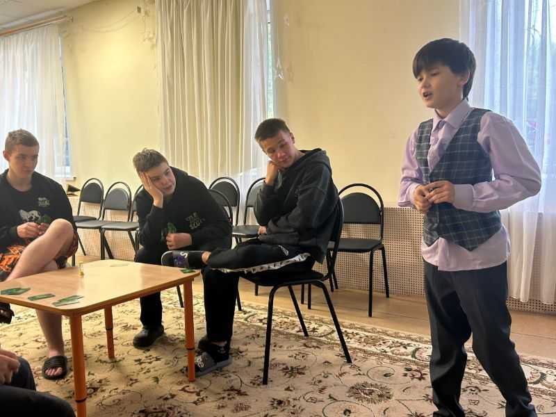 На занятиях с психологом воспитанники стационарного отделения отрабатывают навыки невербального общения: с помощью жестов и различных поз пытаются объяснить содержание карточек психологической игры «показуха».