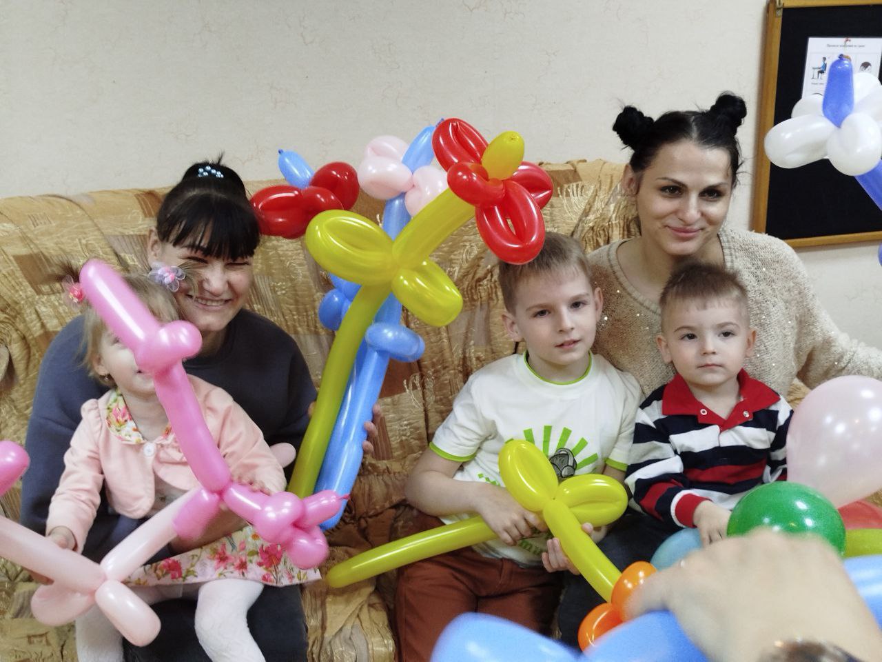 Мамы с детьми приняли участие в веселом мастер-классе по твистингу, своими руками сделали яркие композиции из воздушных шаров.