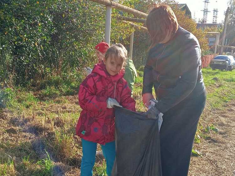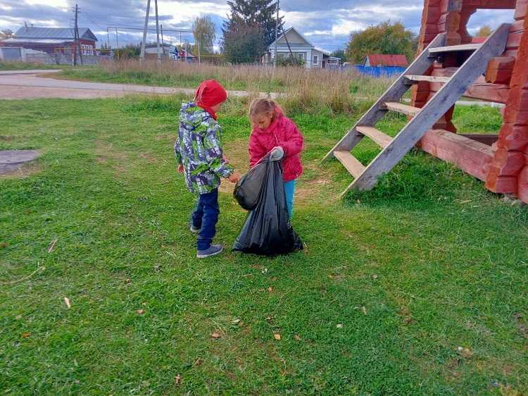Затем дети провели уборку от мусора территории детской площадки и вокруг неё.