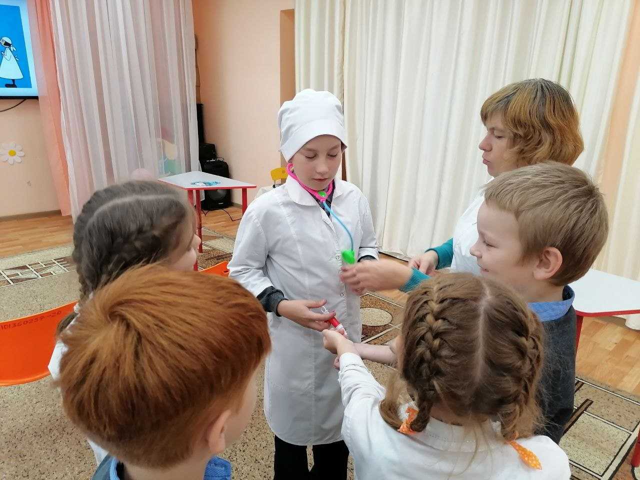 На мероприятии ребята вспомнили, что такое прививки, для чего они нужны и что нужно, чтобы не заболеть. В игровой форме они прошли несколько станций, где пришлось придумать и нарисовать свои вирусы; разобраться какие продукты вредные, а какие полезные; собрать пазлы с изображением доктора, а также побывать в роли врача.