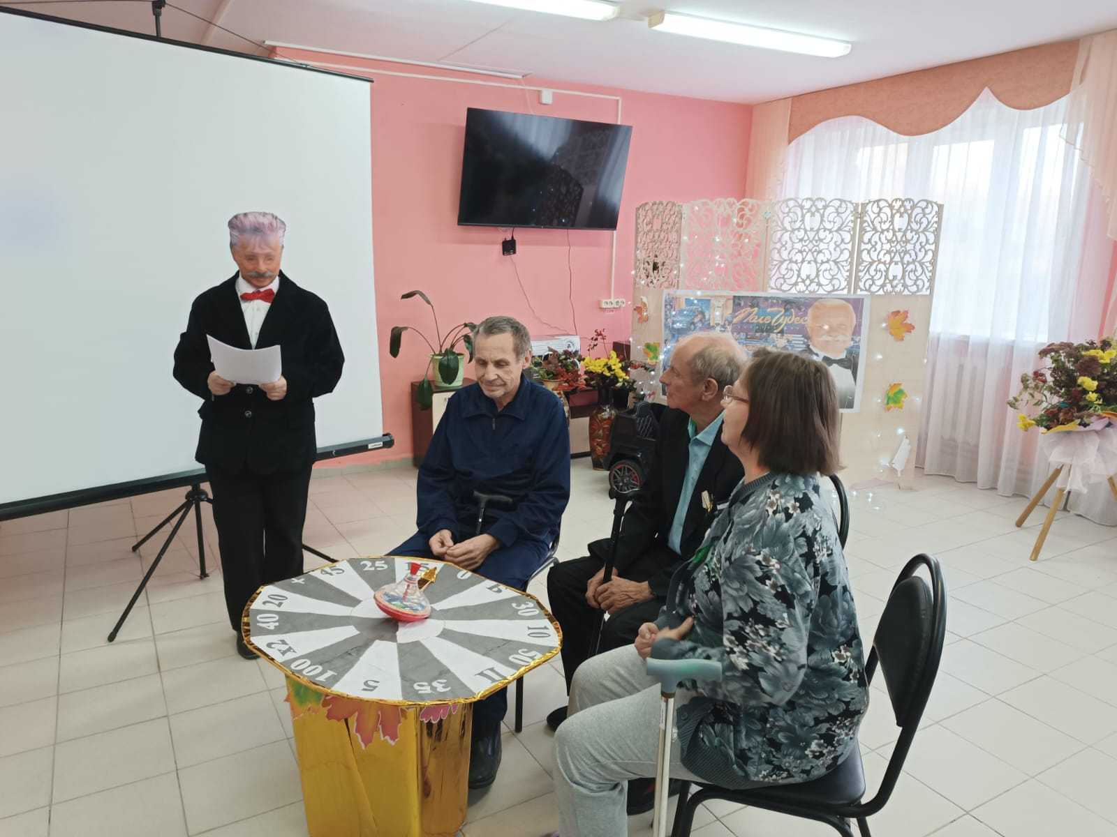 В рамках праздника день пожилого человека в ГБУ «Сосновский дом-интернат» прошла интеллектуально-развлекательная игра «Поле чудес». Девять самых эрудированных проживающих дома-интерната, определились в ходе отборочных туров, стали участниками игры. Тема игры –предметы быта. Все было как в настоящем шоу с Леонидом Якубовичем интересные и познавательные вопросы, сектор «Приз», сектор «Плюс» и другие атрибуты за правильно угаданные буквы. В перерывах между турами звучали творческие номера активистов. Хорошее настроение не покидало участников и зрителей на протяжении всего мероприятия. Шутки, радость, позитив наполнили зал в этот час. Это были веселые минуты отдыха. Участники игры разгадывали задания, а публика поддерживала каждого участника аплодисментами. Победителем игры стал Николай Блохин. Игроки и зрители с удовольствием провели время в кругу друзей, получив много новой и полезной информации и расширив свой кругозор. Победитель и участники игры были награждены памятными призами. Участники игры остались очень довольны интеллектуальным отдыхом.