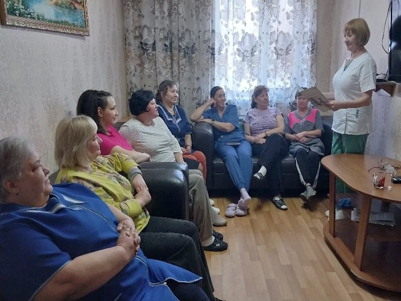 Наш фельдшер Татьяна Валерьевна провела важную беседу с сотрудниками дома‑интерната о мерах профилактики укусов клещей весной.