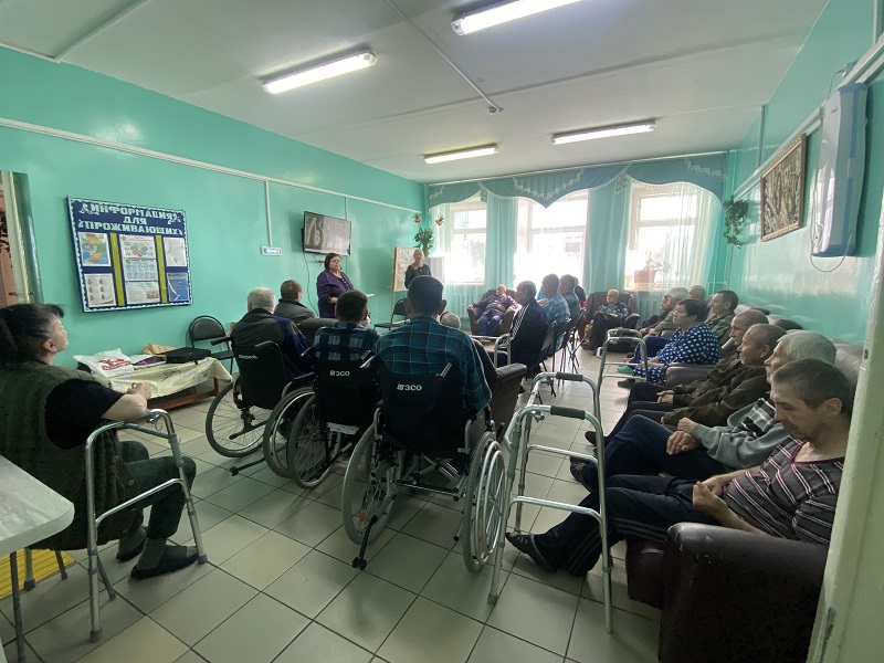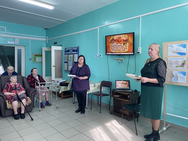 Работники поселковой библиотеки провели для проживающих нашего дома-интерната праздничную программу «Пусть в сердце молодость поет!».