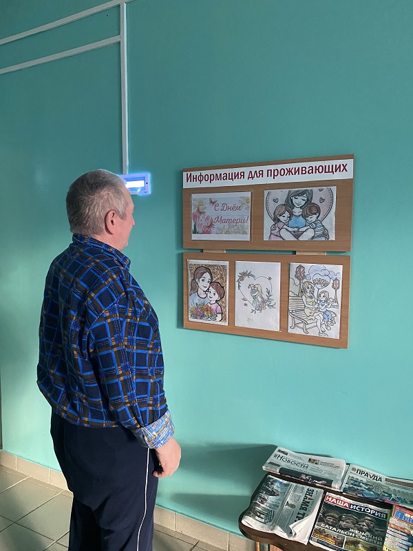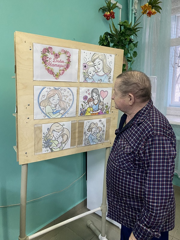В нашем доме-интернате прошло занятие по программе «Ловкие руки». Проживающие раскрашивали рисунки, посвященные Дню матери.