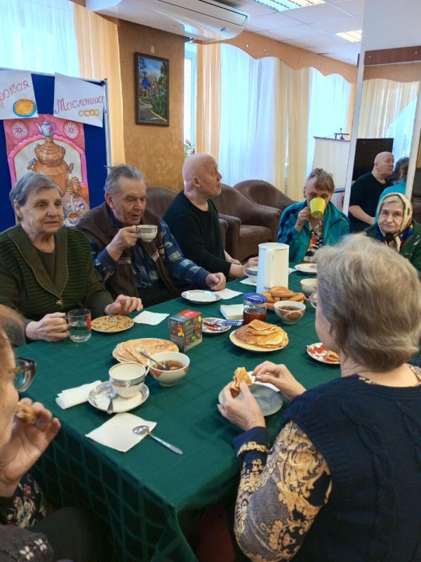 Кульминацией праздника стало традиционное чаепитие. Повара дома‑интерната порадовали гостей обилием блинов — с мёдом, вареньем, сметаной и сгущёнкой. Аромат горячего чая и свежей выпечки наполнил зал, а дружеские беседы сделали встречу ещё душевнее.