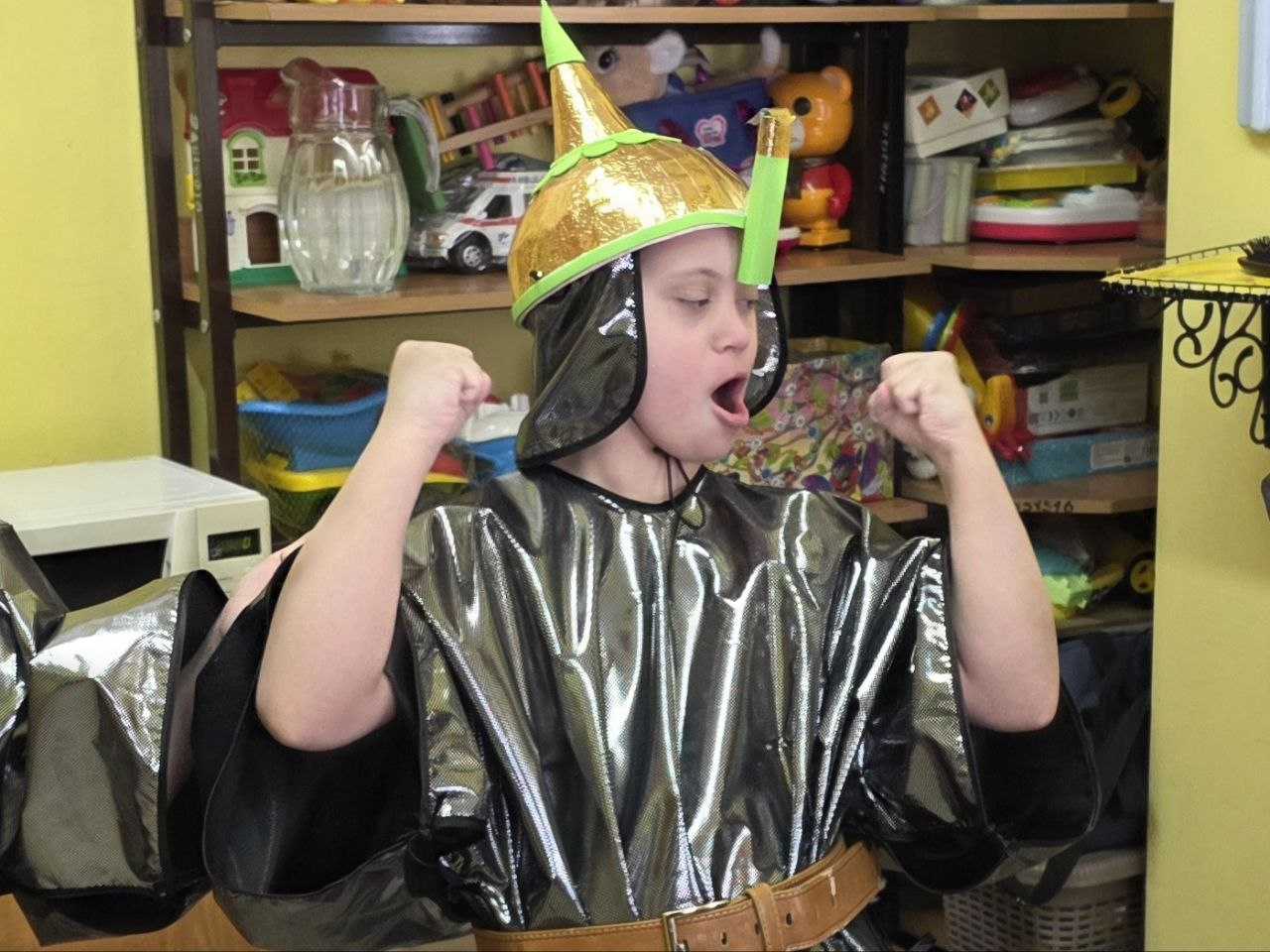 Сегодня каждый из ребят побывал в роли богатыря. Мальчишки нарядились в шлемы и кольчуги, размахивали мечами, скакали на конях, мерялись силою, показывая молодецкую удаль.