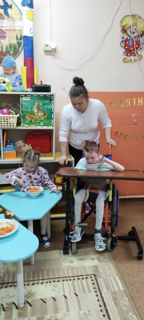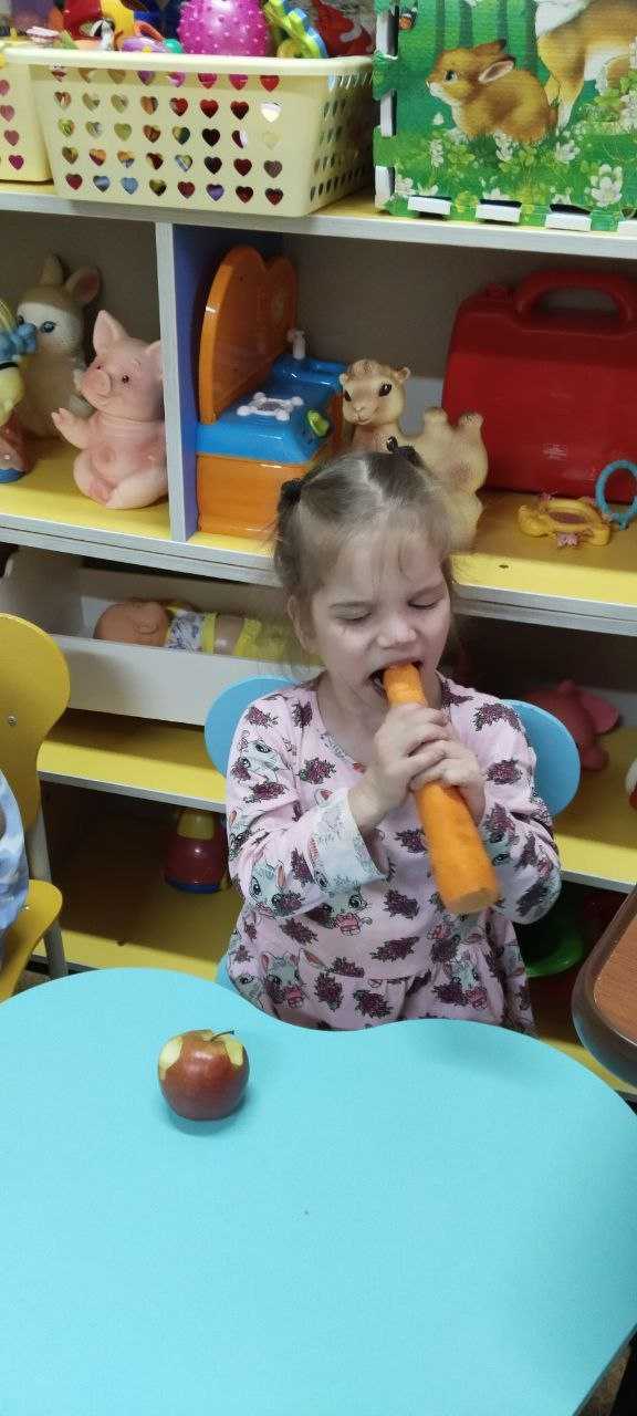 Сегодня малыши отгадывали загадки, про овощи и фрукты и готовили витаминный салат.