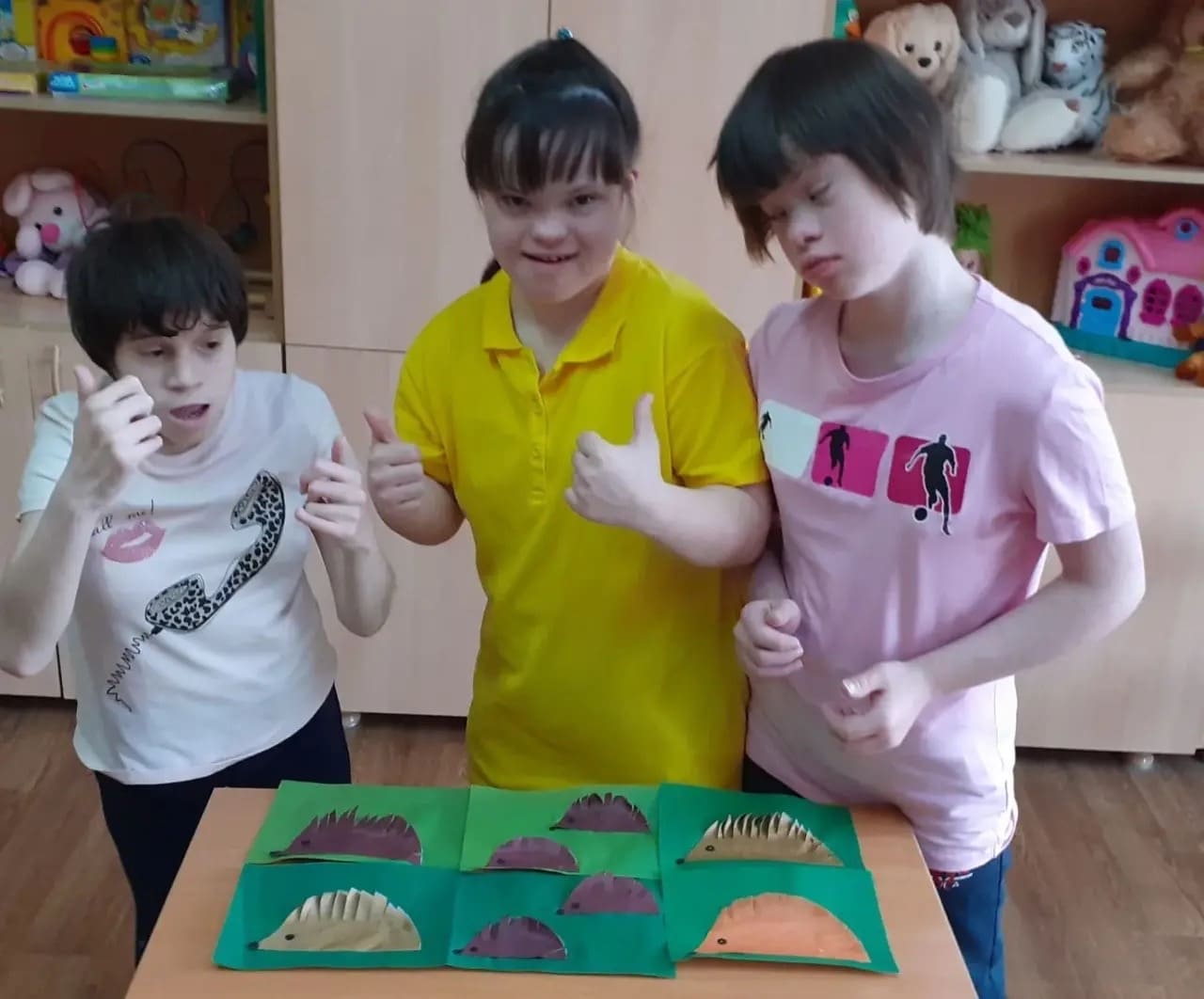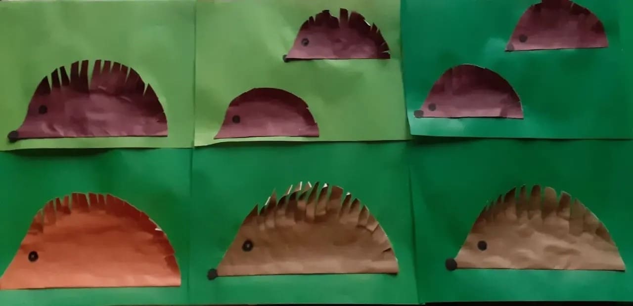 Сегодня воспитанницам было предложено сделать из бумаги одного вышедшего из спячки дикого зверя. Выбор был сделан в пользу ежа