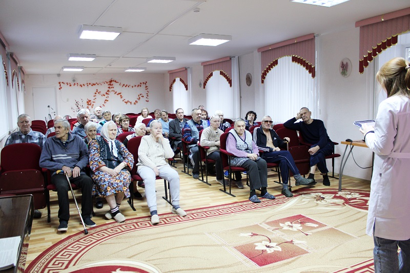 По программе обучения «Школа здоровья» для проживающих ГБУ «Дом – интернат «Зеленый город» совместно со специалистом из ГБУЗ НО «Городская поликлиника № 7» была проведена беседа по теме: «Школа здоровья для людей с повышенной массой тела».
