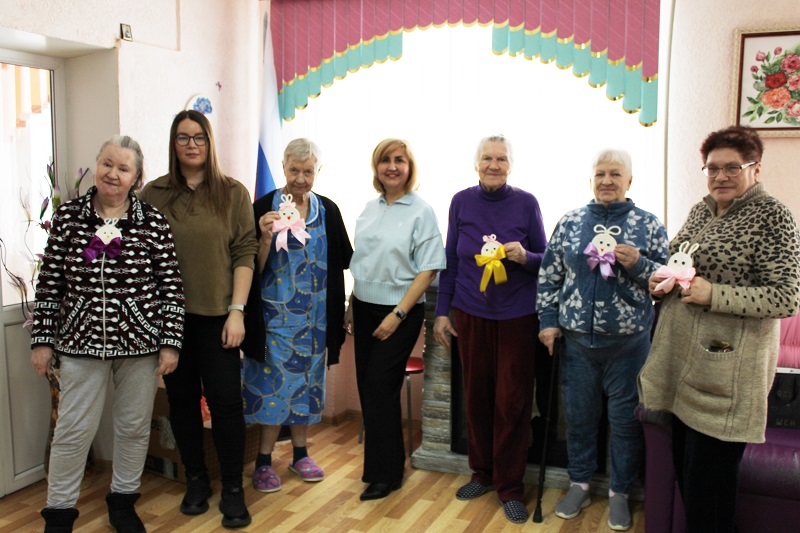 23 апреля в актовом зале дом – интерната состоялся увлекательный мастер-класс, посвященный изготовлению очаровательных подставок в виде зайчиков. Под чутким руководством и с неоценимой поддержкой представителей Сервисного центра Сопровождение снабжения Сбера, наши проживающие с энтузиазмом принялись за работу. В качестве основного материала была выбрана хлопчатобумажная тесьма. Благодаря своей податливости и приятной текстуре, она легко поддавалась формированию, позволяя воплотить в жизнь самые смелые идеи и придать каждому зайчику неповторимую форму. Процесс создания зайчиков был наполнен оживленными разговорами, смехом и взаимной помощью. Каждый этап работы сопровождался дружеским общением, где делились секретами мастерства и поддерживали друг друга. Особое внимание уделялось деталям, которые придавали нашим зайчикам индивидуальность и характер. И, конечно же, какой зайчик без выразительных глаз? Именно они, прикрепленные с любовью и старанием, оживили наши поделки, придав им трогательный и дружелюбный вид. А яркие банты, словно праздничные украшения, добавили завершающий штрих, сделав каждого зайчика по-настоящему уникальным и неповторимым. Мы выражаем огромную благодарность Сервисному центру Сопровождение снабжения Сбера за этот замечательный день. Ваша инициатива и щедрость подарили нам не только милых зайчиков, но и бесценные моменты радости, общения и творчества.