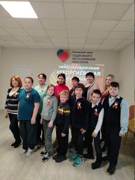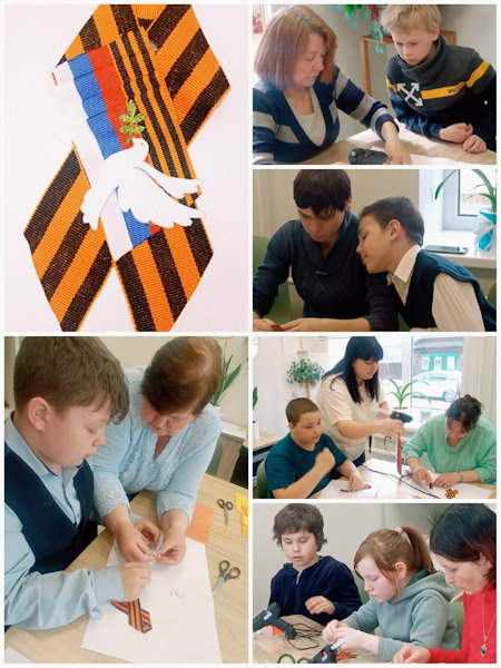 Здесь, в тесном кругу, дети вместе с родителями творили своими руками один из главных символов мужества, памяти и воинской славы — георгиевскую ленту.