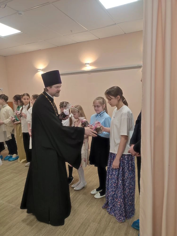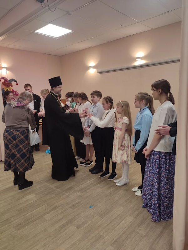 17 апреля, в пятницу Светлой седмицы наш центр посетили благочинный Кстовского округа иерей Евгений Наумов и помощник благочинного по взаимодействию с медицинскими и социальными учреждениями иерей Владимир Сергеев, они поздравили детей с праздником Пасхи. Также в рамках «Пасхальных дней милосердия» дети воскресной школы села Большая Ельня выступили с концертной программой для воспитанников центра «Алый парус» и для детей из патронажных семей. В завершении мероприятия каждый получил сладкий подарок.