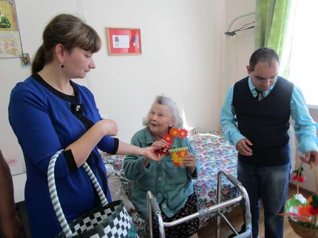 В преддверии праздника ребята подготовились, сделали своими руками поделки-сувениры и открытки для наших бабушек и дедушек, с написанными добрыми поздравлениями и пожеланиями. В ходе акции сотрудники вместе с ребятами посетили пожилых людей, поздравили их с праздником, вручили им свои подарки и угощения, искренне пожелали доброго здоровья, долголетия и хорошего настроения.