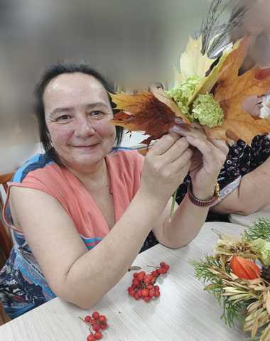 Сегодня мы решили воплотить эту идею в жизнь и принести частичку осеннего волшебства в нашу комнату. Специалисты по социальной работе провели увлекательный мастер-класс "Розы из кленовых листьев". Участники мастер-класса сворачивали листочек за листочком, и из них рождались удивительные розы.