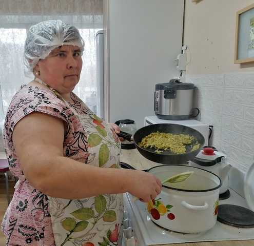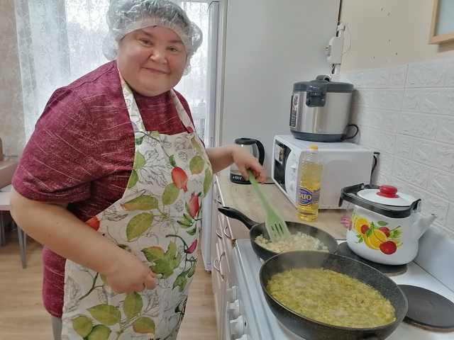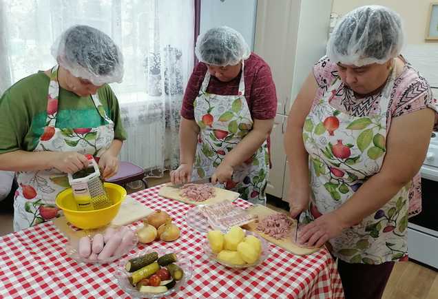 Участники занятия с большим воодушевлением погрузились в кулинарный процесс. Каждый этап, от подготовки ингредиентов до финального тушения, проходил под их чутким руководством специалистов по социальной работе. Подопечные с удовольствием чистили овощи, ловко орудовали ножами, умело жарили и тушили, превращая простые продукты в настоящее гастрономическое чудо.