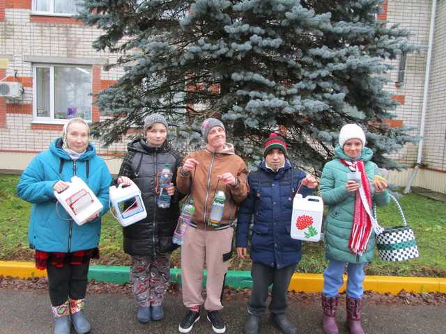 19 ноября в филиале учреждения в посёлке Смиркино царила особая атмосфера – наши волонтёры добра под руководством специалистов по социальной работе с большим усердием и заботой изготавливали кормушки для птиц, используя подручный материал, а затем и развешивали их на территории интерната.