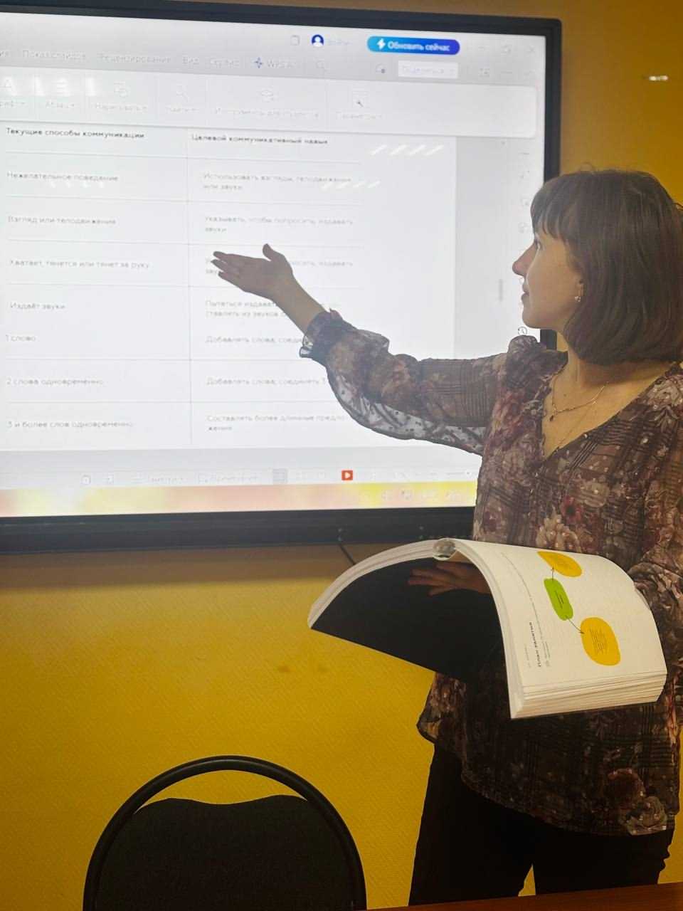 15 октября состоялось четвертое занятие в рамках программы "9 шагов". Ведущий программы - старший АВА-инструктор, логопед, дефектолог Марина Игоревна Дружинина. Традиционно начало тренинга ознаменовалось теплым приветствием и подготовительной разминкой. Участники вместе с ведущим провели дыхательную гимнастику, направленную на снятие напряжения и повышение концентрации внимания. Затем вспомнили ключевые идеи предыдущего занятия. Следующим этапом стало обсуждение важной темы - эффективные способы взаимодействия с детьми, имеющими расстройства аутистического спектра (РАС). Марина Игоревна подробно рассмотрела случай Оксаны, приведенный в рабочей тетради, показывая родителям, какими невербальными и вербальными средствами можно скорректировать поведение ребенка, учитывая его личные характеристики и возрастные особенности. Завершив теоретический раздел, группа перешла к практической части: были предложены разнообразные задания, выполняемые как индивидуально, так и совместно.