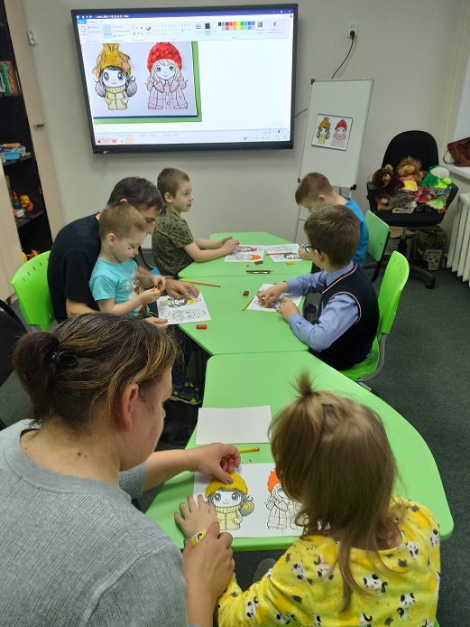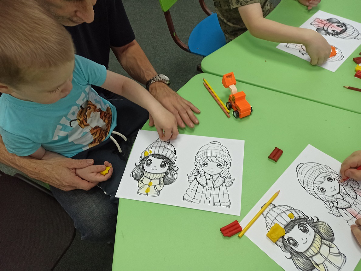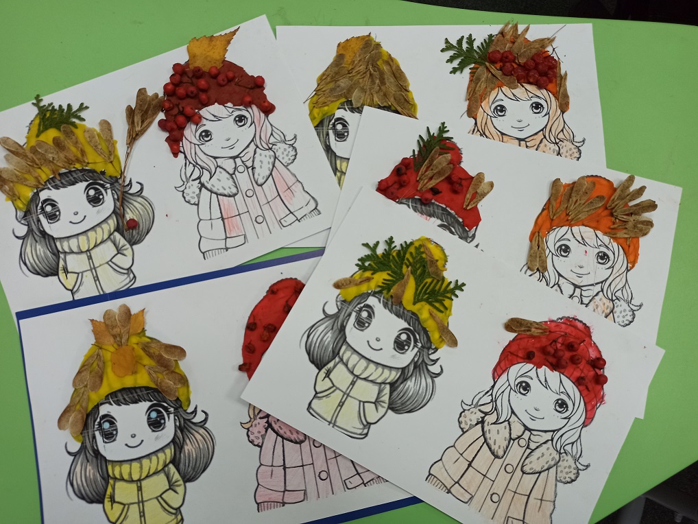 Сегодня в Мультстудии состоялся мастер-класс "Парад осенних шляпок". На начальном этапе ребята получили заготовки на ватмане с силуэтами двух девочек в осеннем наряде. Пальто девочкам раскрасили осенними тонами: желтым, красным, коричневым, оранжевым. А шляпки раскрасили пластилином по цвету пальто. Для украшения шляпок пригодился осенний природный материал - листочки, веточки туи, серёжки клёна, красные ягодки рябины. Всё это было прилеплено на пластилин шляпок. Ребята проявили фантазию и украсили свои шляпки каждый по-своему. В результате получилась изумительная осенняя поделка, яркая и оригинальная!