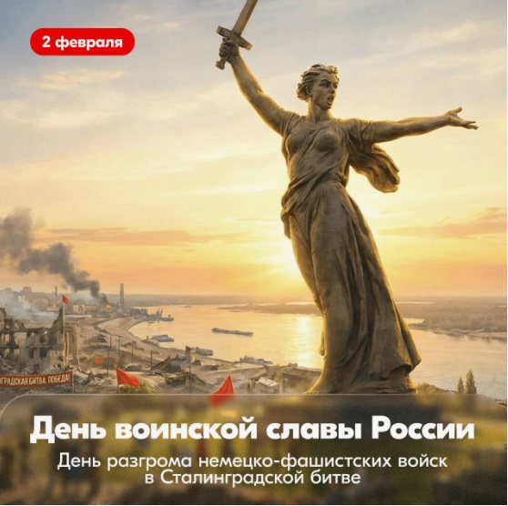 2 февраля - День воинской славы России - День разгрома советскими войсками немецко-фашистских войск в Сталинградской битве, который был официально установлен Федеральным законом от 13 марта 1995 года "О днях воинской славы (победных днях) России".