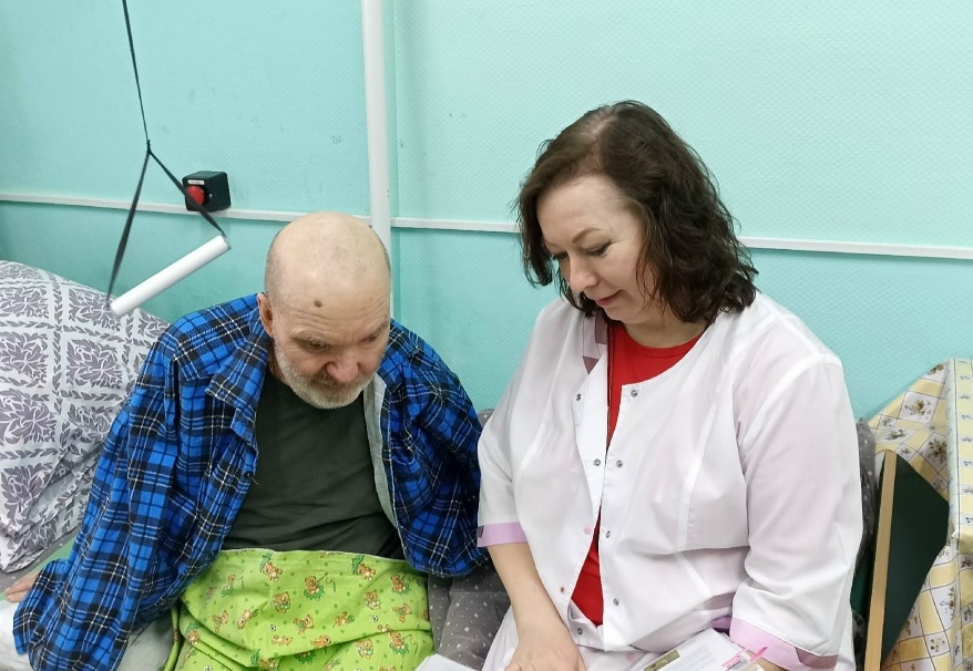 Старшая медсестра провела познавательную беседу с пожилыми жителями о профилактике инсульта.