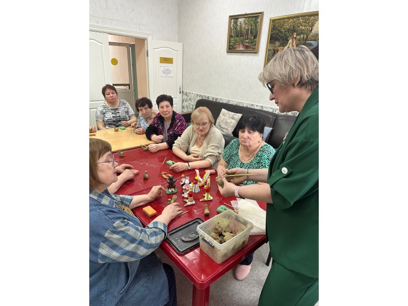 С особой теплотой и мастерством занятие провела директор Уренского дома ремесел, Староверова А.В. Её увлеченность и глубокие знания истории народного промысла мгновенно завладели вниманием всех участников. Алевтина Вячеславовна провела захватывающий мастер-класс по работе с глиной, превратив обычный материал в волшебство. Под чутким руководством мастера участники погрузились в мир глиняной игрушки. Староверова А.В. не только продемонстрировала тонкости ремесленного дела, но и провела увлекательную экскурсию в историю этого древнего искусства. Она с легкостью рассказала о различиях между знаменитыми дымковскими игрушками и другими уникальными образцами народного творчества, раскрывая их культурное значение и особенности. Каждый отдыхающий, вооружившись глиной и вдохновением, приступил к созданию своей собственной птички. Чувствовалось, как оживают руки, приобретают уверенность движения. Под чутким руководством мастера из бесформенной массы появлялись изящные силуэты, символизирующие свободу и радость. Этот процесс стал не просто творческим заданием, а настоящей терапией, позволяющей забыть о повседневных заботах и полностью погрузиться в процесс созидания. В итоге каждый унес с собой не только уникальное глиняное творение, но и бесценные воспоминания о чудесном дне, наполненном искусством и добрым общением.