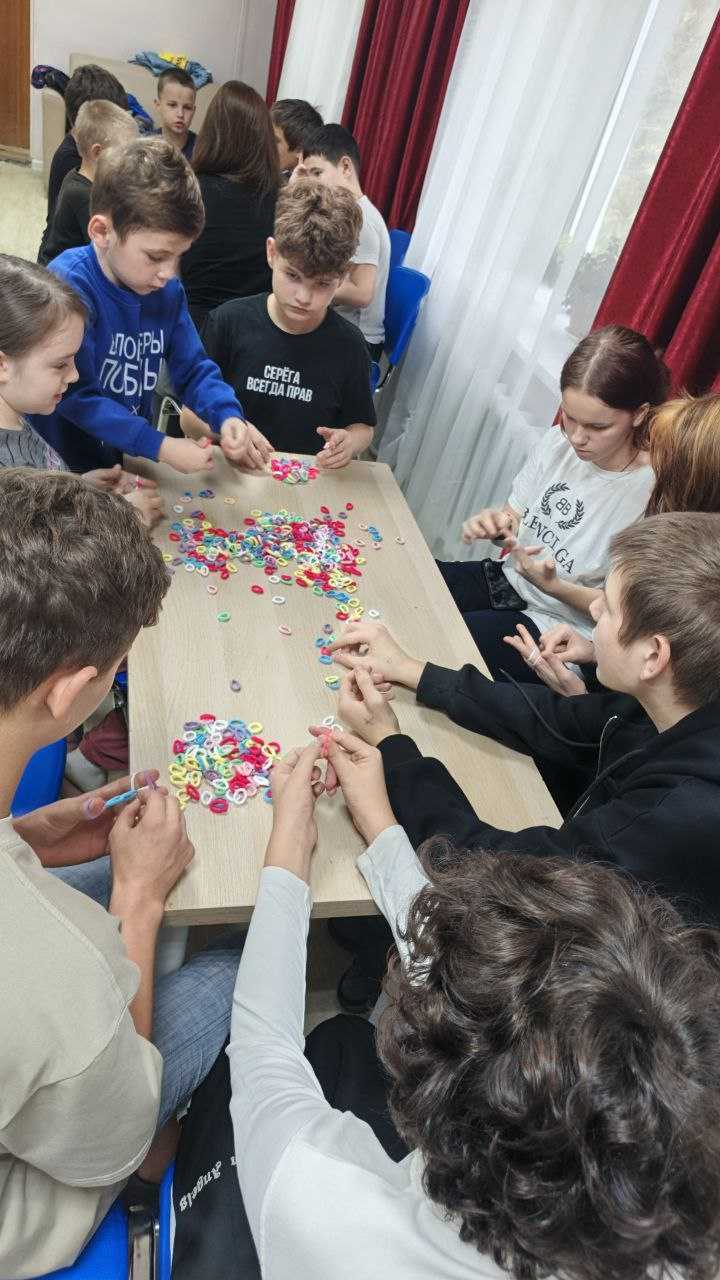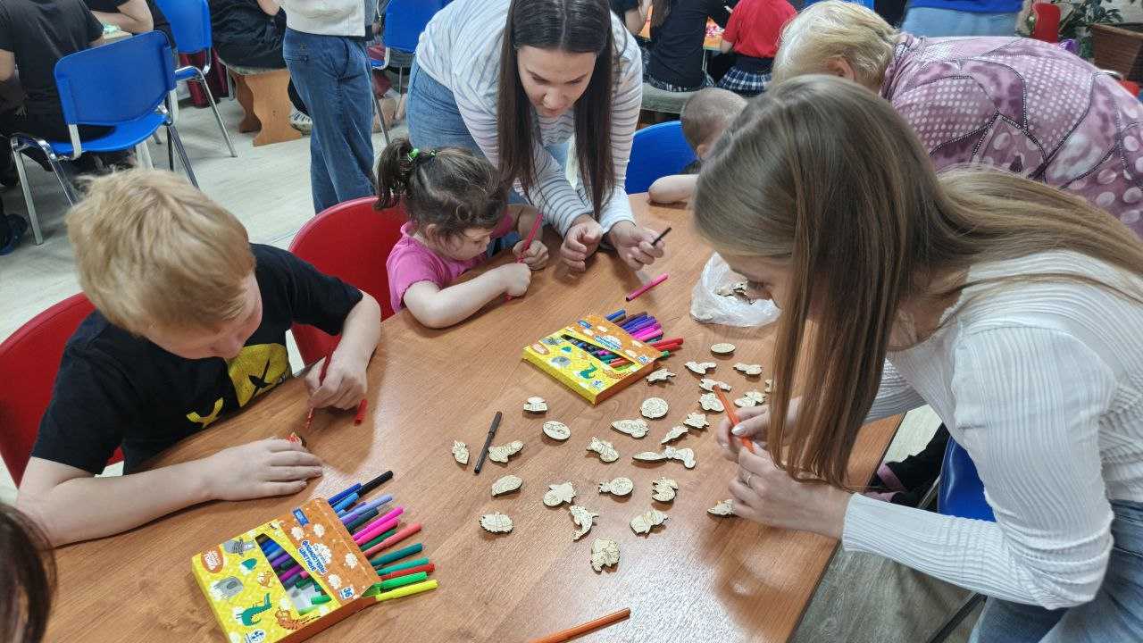 Ребята плели браслеты из резинок, лепили фигурки из воздушного пластилина и раскрашивали значки.