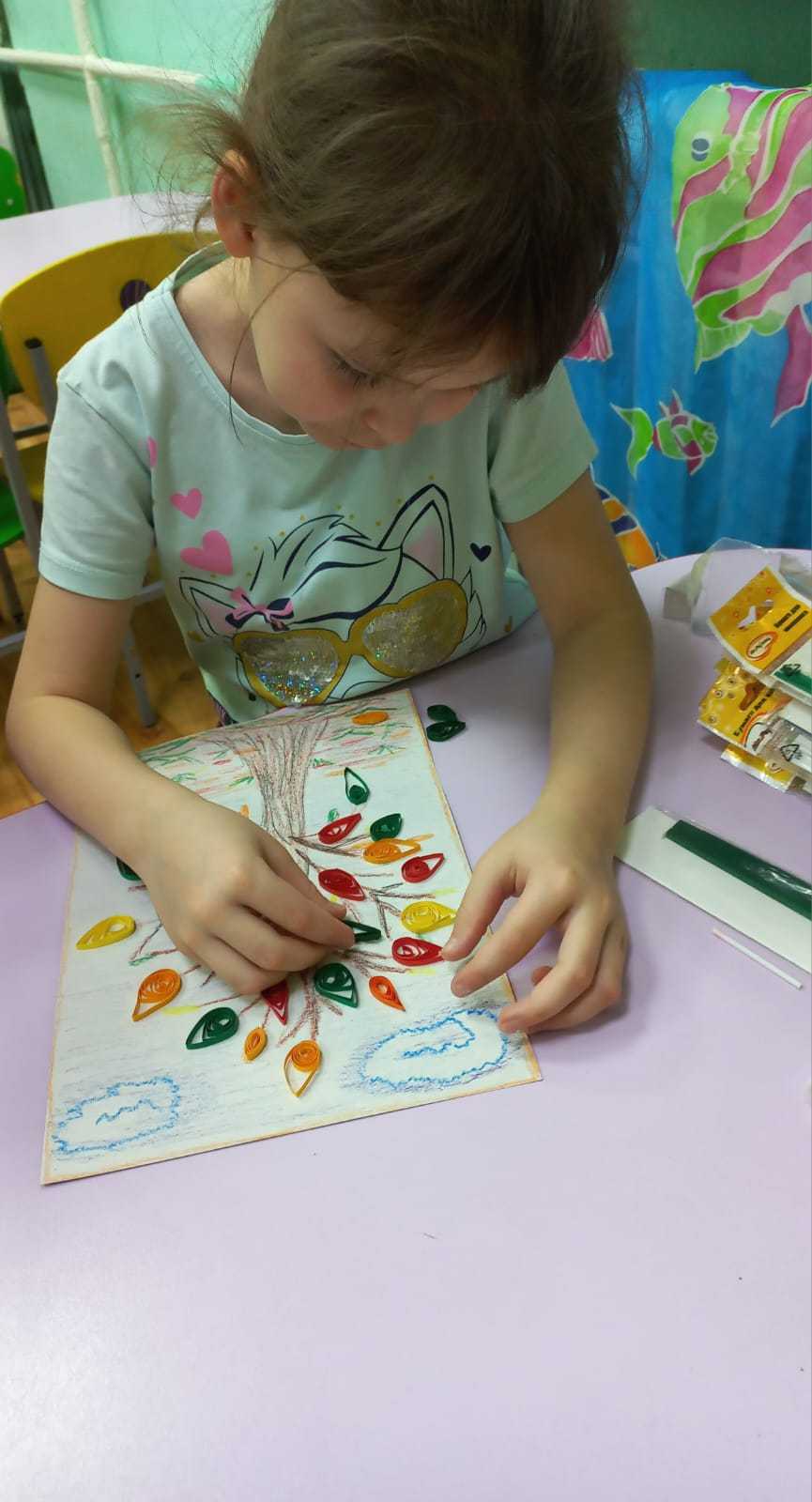 Воспитатель дошкольной группы Надежда Михайловна Шестакова провела занятие по квиллингу, которое было посвящено созданию прекрасных осенних деревьев из бумаги.
