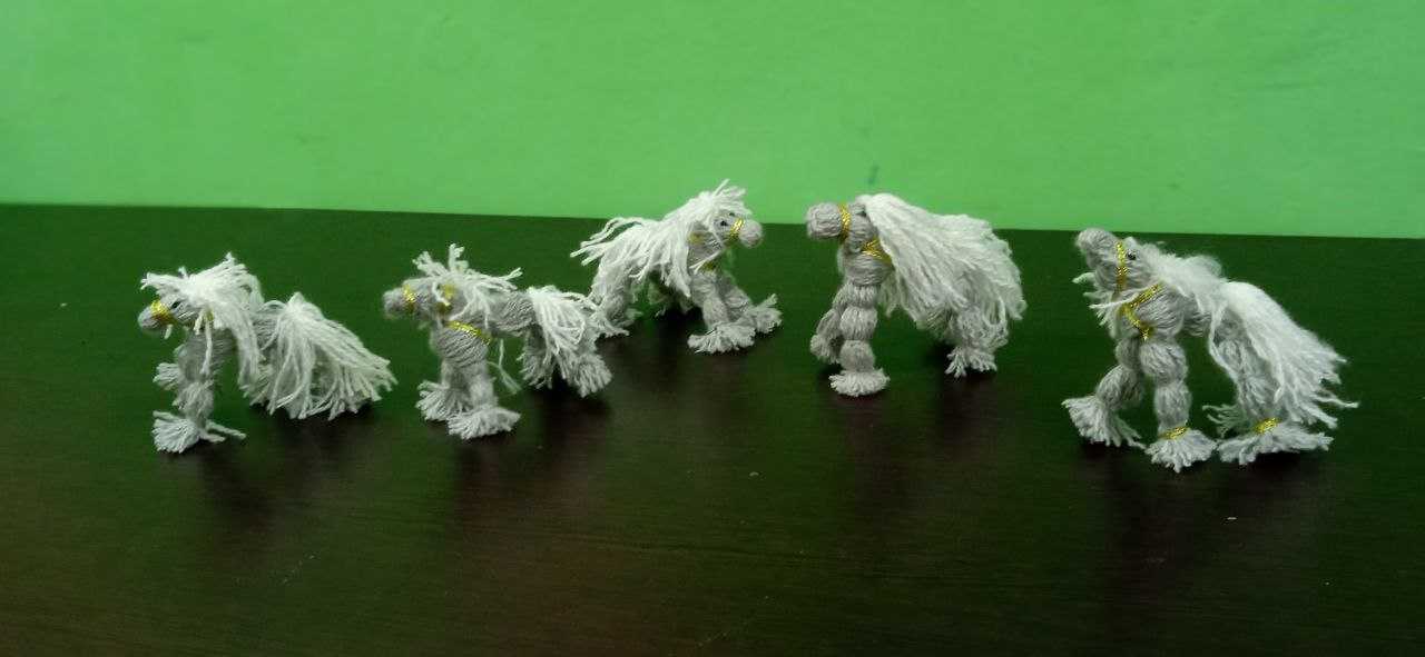 Работа с нитками развивает мелкую моторику рук, память, художественно-эстетический вкус. Воспитывает аккуратность, умение доводить начатое до конца. Учить детей думать и анализировать, планировать творческий процесс . Посмотрите какие красивые лошадки получились у наших ребятПредлагаем и Вам создать своими руками милый и теплый оберег для дома или оригинальный подарок близким — текстильную лошадку из обычных ниток. Это не просто игрушка, а древнеславянская народная кукла-мотанка, которая принесет удачу и благополучие в Ваш дом.Для изготовления лошадки нам нужно: нитки двух цветов на туловище ,на гриву и хвост, книгу или блокнот для наматывания ниток, глазки-бусинки, золотая ленточка и иголка ,чтобы пришить глазки. А ещё терпение и вдохновение.Ход работы: сначала наматываем нитки на блокнот, снимаем и аккуратно завязываем в середине, разрезаем, расправляем заготовку. Формируем голову, туловище и ноги , перевязывая нашу заготовку нитками -учимся завязывать узелки. Пришиваем глазки -бусинки. Украшаем лошадку золотой лентой. Лошадка готова.Такая игрушка наполнит дом уютом и теплом ваших рук.