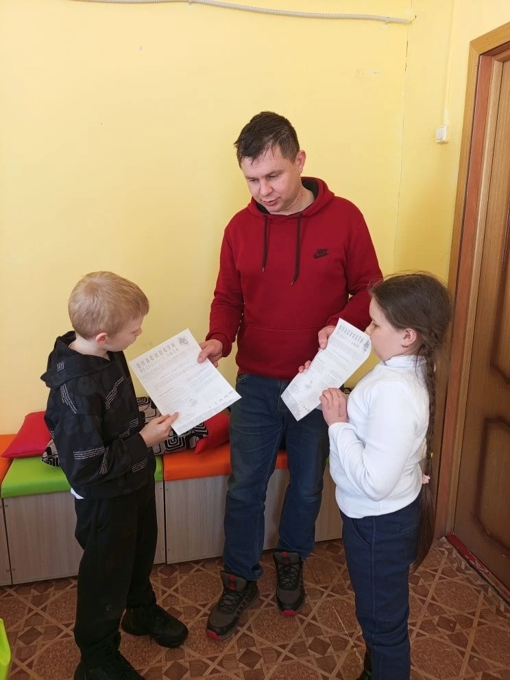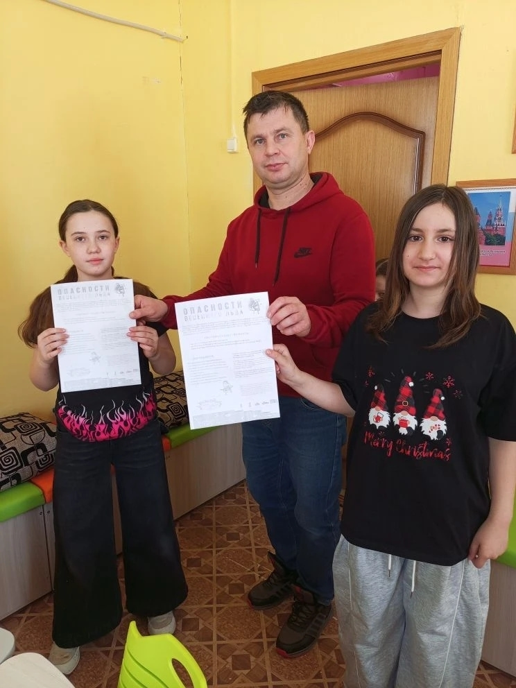 Во время весенних каникул дети часто спешат на пруд, и к реке, чтобы в последний раз покататься на коньках, спуститься с крутого берега на санках или просто поиграть. Ребята узнали, что игра на льду это опасное развлечение. Также Виктор Александрович подготовил и вручил специальные памятки, чтобы ребята внимательно прочитали их и постарались запомнить основные моменты.