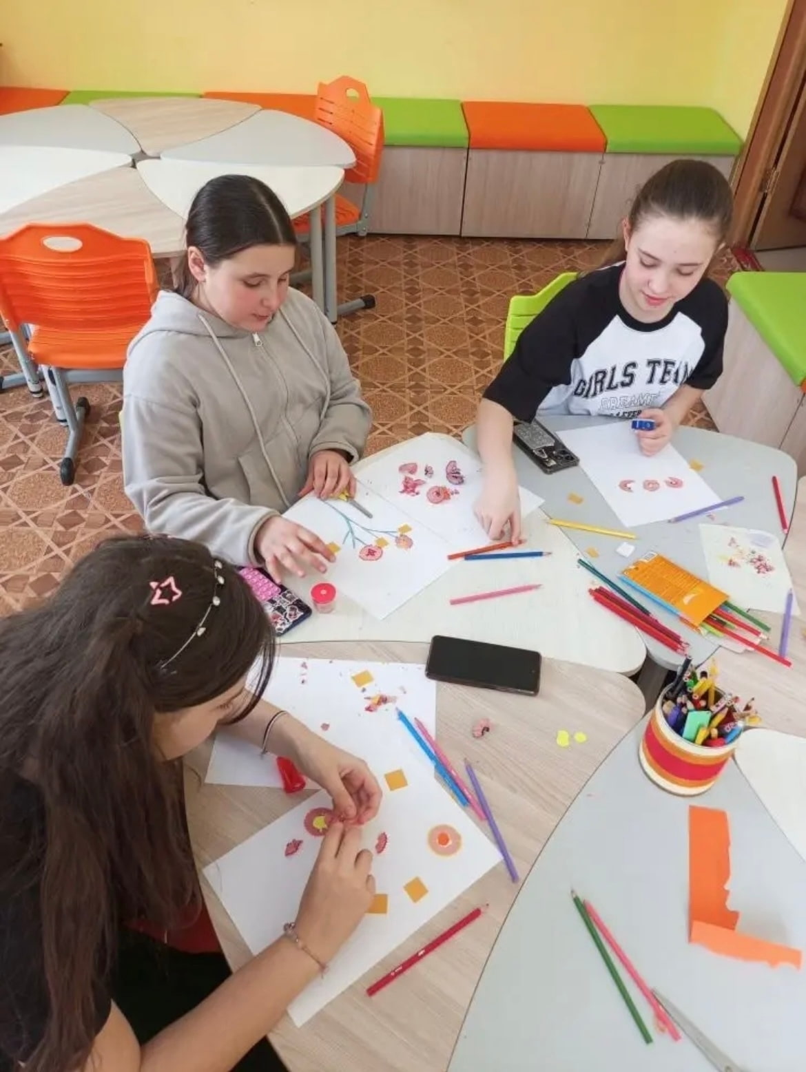 В отделении дневного пребывания прошло необыкновенно творческое занятие для воспитанников кружка "Фантазия"! Дети с большим энтузиазмом посвятили себя созданию изящных цветов, используя совершенно неожиданный, но очень эффективный материал — стружку от цветных карандашей.