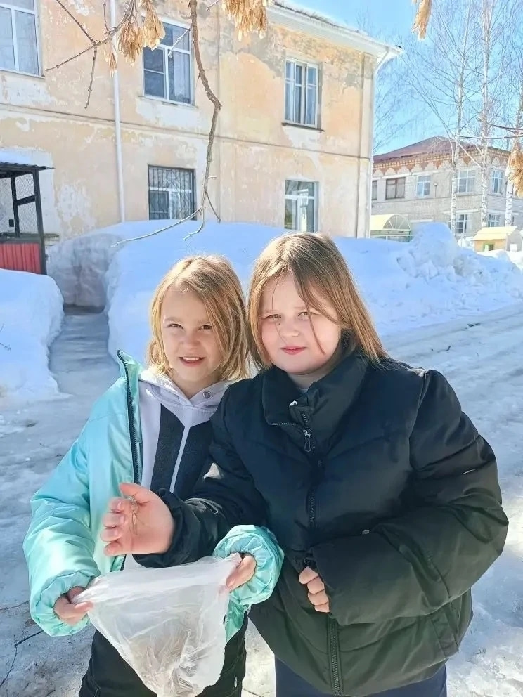 Ребята решили, что обычная прогулка — это скучно, и устроили охоту за природными материалами. Набрали кленовых «вертолётиков» (крылаток).