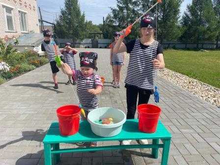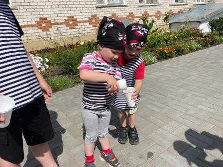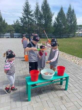 Каждый ребенок, облаченный в пиратскую бандану соревновался в ловкости, демонстрировал меткость с помощью водяных пистолетов в увлекательных конкурсах с водой.