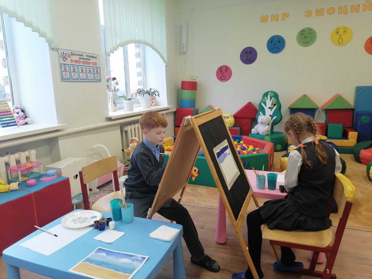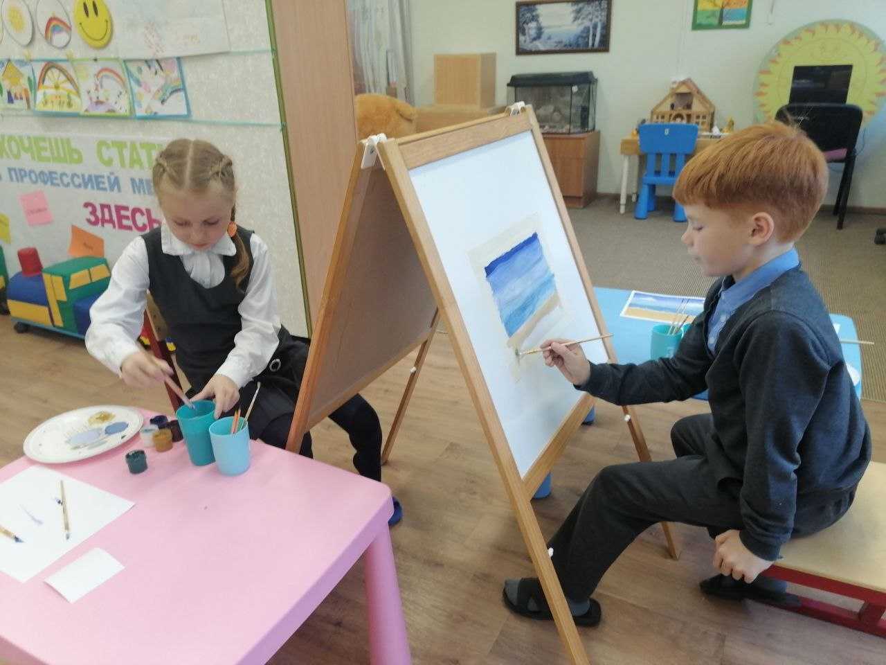 Во время занятия ребята рисовали море, погружаясь в мир ярких красок и форм. Отсутствие оценок позволило им свободно экспериментировать, выражать эмоции и мысли.
